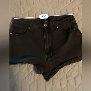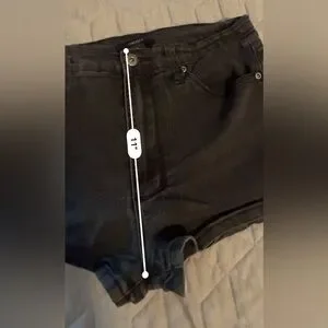 Forever 21 Mini Shorts Black size 29 hem denim stretchy zip fly button pockets