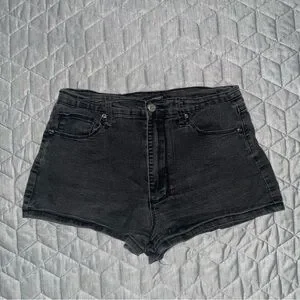Forever 21 Mini Shorts Black size 29 hem denim stretchy zip fly button pocket