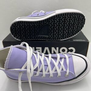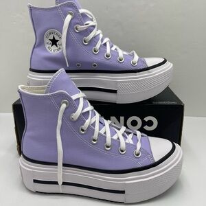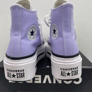 Elevate your look with these light purple Converse platform high-tops. Stylish and comfortable for any casual occasion.
