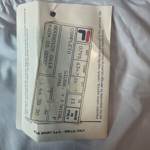 Authentic FILA Sport S.p.A. Biella production from the late 1980s–early 1990s. These pants were originally part of a "Giubbotto + Pantalone" tracksuit set and feature the classic F-Box logo, elastic waist with braided drawstring, and elastic cuffs. Soft interior lining and lightweight shell make them great for training or casual retro style. Includes the original FILA booklet with Borg-era imagery.