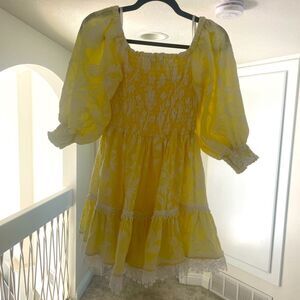 Waimari Yellow embroidered dress, XS