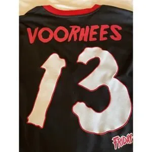 Friday The 13th Jason Voorhees Hockey Jersey Men's S/P Black Red Horror Patch