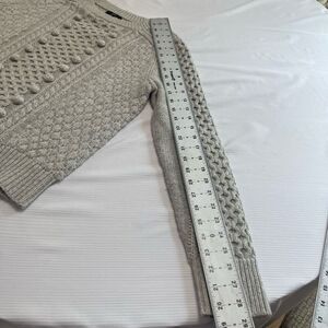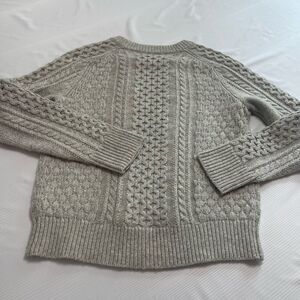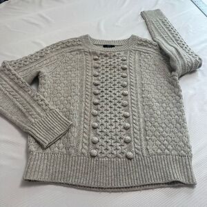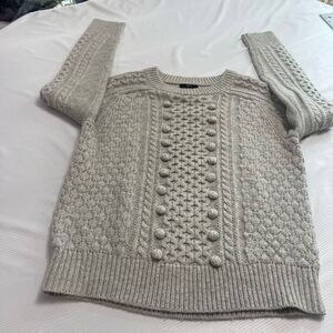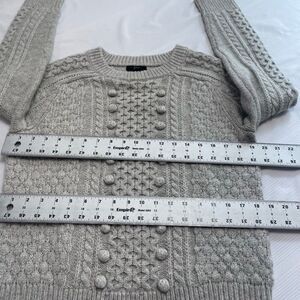J. Crew Grey Pom Pom Cable Knit Sweater Pullover Fisherman Size Small