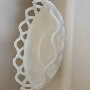 The milk glass design makes this dish versatile for year-round decor, fitting well with vintage, farmhouse, or shabby chic.