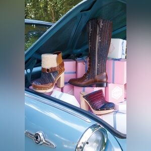What a great collab this is! Wool, leather and wood make up these fabulous sweatery heeled boots by WOOLRICH for ANTHRO.