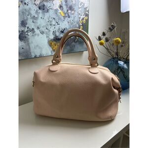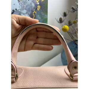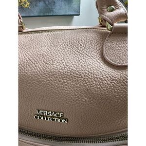 VERSACE COLLECTION Pebbled Leather Pink Handle Bag . Has some cat scratches. See pictures. Inside is in decent condition. Some stains. Bottom and corners are in great shape. Overall Gently used preowned condition. Color maybe slightly different due to light