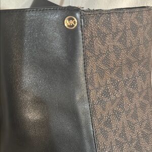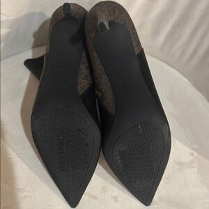 Step out in style with these chic Michael Kors ankle boots. Featuring a sleek black leather front and a sophisticated brown patterned back, these boots are perfect for any occasion. The elegant design and quality craftsmanship make them a must-have addition to your wardrobe. Never worn, right heal has small unraveling see photo #6. Women’s size 9M.