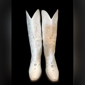 White Cowgirl Boots with Crystal Studs
