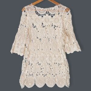 Women's Vintage Y2K Boho Festival Coachella Coastal Cowgirl Open Crochet Top in Ivory. Size Medium-ish.