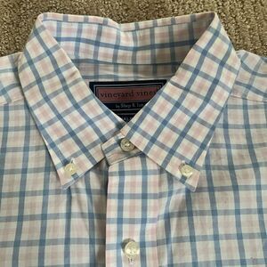 Vineyard Vines Blue and Pink Plaid Button Down Whale Shirt