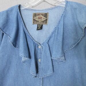 Vintage Express Top XS Ruffle Button Up Chambray Prairie Cottage Core Hong Kong