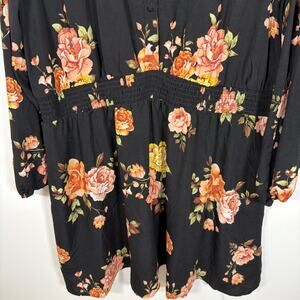 Rue + Plus Size Floral Dress 4X Long Sleeve Midi Ruched Waist Fit & Flare