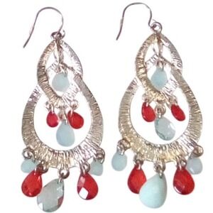 Bohemian Teardrop Earrings Red Green Blue Beaded Chandelier Dangle