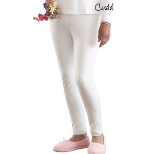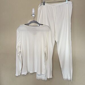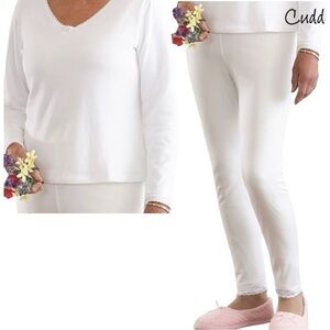 2 pieces Cuddle Duds Softwear Warm V-Neck Long Sleeve Top with Lace & also pants with lace trim — Ivory —pants and long sleeve V neck perfect for layering, warmth, comfort
