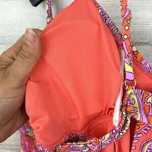 NWT Jessica Simpson Womens sz L Flower O Ring cutout one piece swimsuit, back hook and eye closure, should straps, bandeau neck, moderate coverage, removable soft cups, lined, paisley print