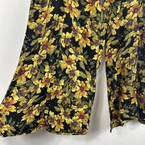 Free People Dark Floral Crepe Wide Leg Pants Sz 4 Love Letters Flowy Festival