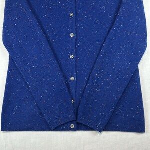 Lands End Blue Cashmere Cardigan Sweater Nepped Confetti Print Size XS Cozy Chic