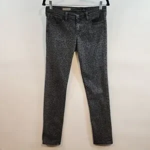 AG Adriano Goldschmied Grey Leopard Print Jeans The Legging Ankle Animal Print
