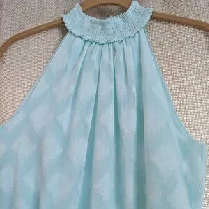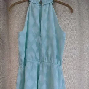 White House Black Market light green pastel sleeveless dress. Size is 4. Lenth of dress is 39 inches Bust is 32 inches Dress is a sheer light weight fabric, and the dress is lined with a decorative neckline. In good condition