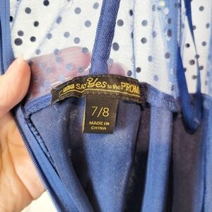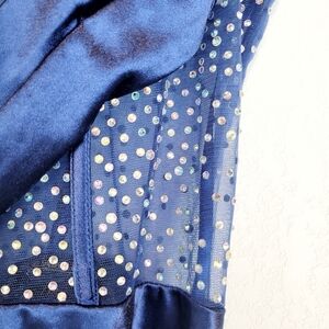 NWT TLC Say Yes Juniors Pleated Illusion Trim Rhinestone Corset Gown in Navy