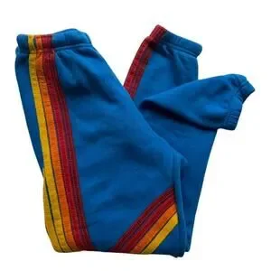 Aviator Nation Blaze Stripe Sweatpant Ocean Blue Size XS Jogger High Rise Cotton