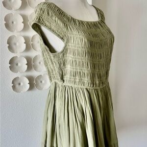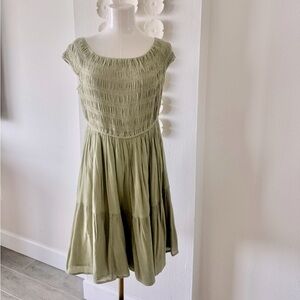 Oak and Fort Sage Green Gauze Dress – Size L – Off Shoulder Vacation Style