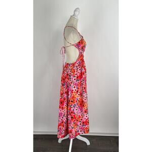 Sundae Muse Floral Halter Cut Out Back Midi Dress Pink Orange Womens Size 12