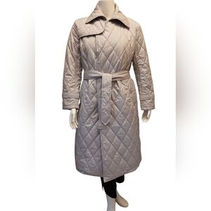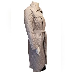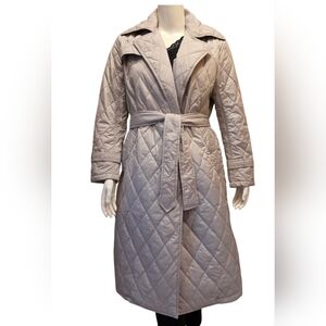 Rebecca Minkoff Stylish quilted long coat in a light stone color. Perfect for a chic and cozy look