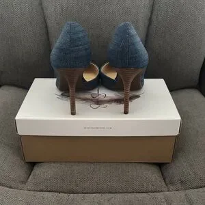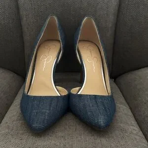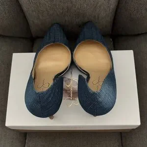 Step out in timeless style with these Jessica Simpson denim pointed-toe heels 🤍