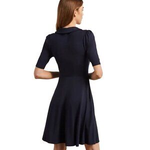 Elevate your wardrobe with this Boden NWT Fixed Wrap Jersey Dress. Featuring a collared V-neck and 1/2 puff sleeves, it offers a flattering fit with added convenience from pockets. Perfect for both casual and formal occasions. Retail $98