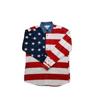 Roper Shirt Men's L American Flag Stars Stripes Long Sleeve Western Patriotic