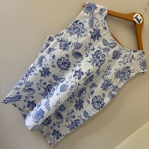 J Marco 100% Linen Blue & White Floral Sleeveless Top Women's sz XL preworn