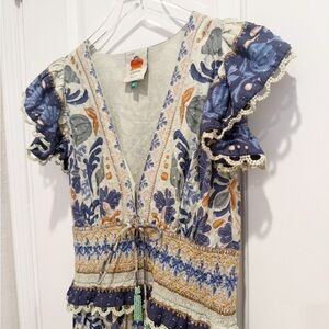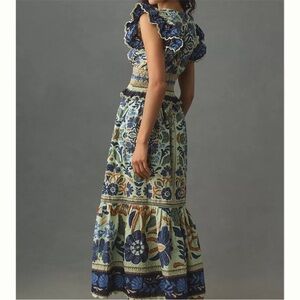 FARM RIO Ocean Tapestry Maxi Dress size XS Flutter Sleeve Floral