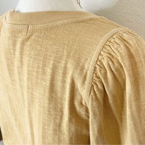 Apiece Apart mustard yellow pullover sweatshirt top. Puff sleeve, long cuffed sleeve. Crewneck. 100% organic cotton. Made in the USA