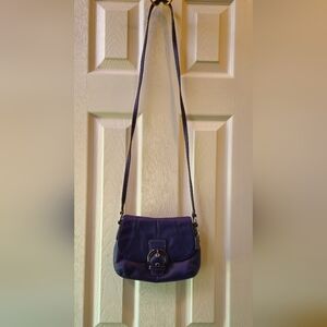 Chic Coach crossbody in deep purple leather. Stylish and versatile for most outings.