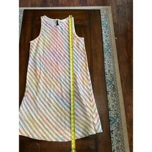 Lou & Grey Diagonal Rainbow Stripe Sleeveless Swing Dress Size Small