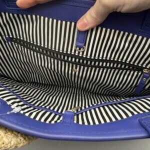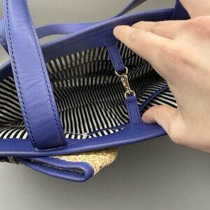 Kate Spade New York Straw Belle Place Woven Tote Bag Handbag Blue Beige