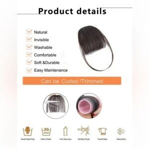 Enhance your look with this stylish natural Black clip in bangs hairpiece. Perfect for adding volume and style effortlessly.