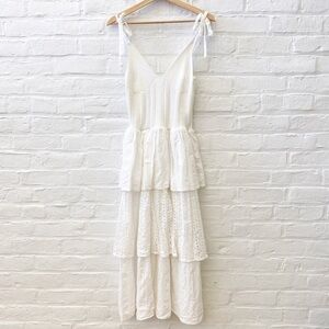 Tuckernuck || En Saison Croix Tiered Midi Dress Crochet Eyelet Bows White Medium