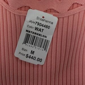 Chic dress with scalloped edges. Short sleeves and fitted waist. Perfect for stylish outings, color like watermelon.