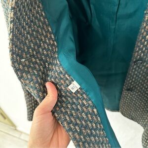 Vintage Chester Weinberg Green Multicolor Woven Stitch Double Breasted Blazer