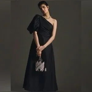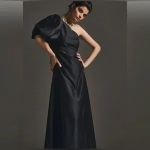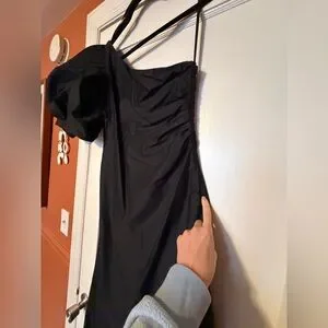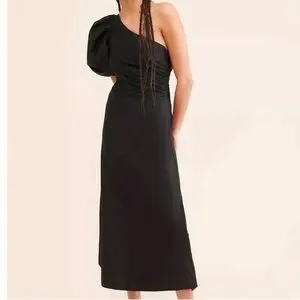 Black One-Shoulder Puff-Sleeve midi Dress. More A-line fit. Super comfortable. Only worn for a few hours.