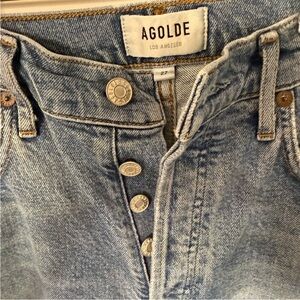 AGOLDE Riley 90s High Rise Straight Crop Distressed Button Fly Jeans size 27 EUC