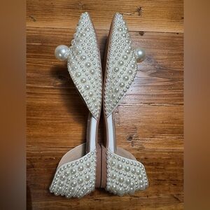 Elegant Pearl-Embellished Cream Flats