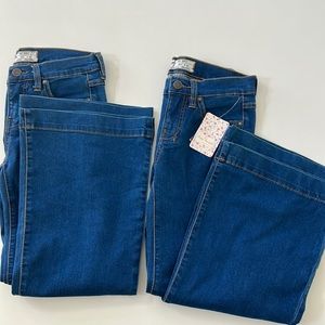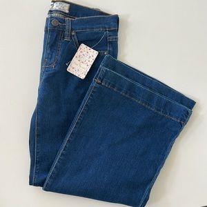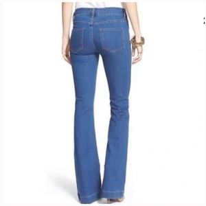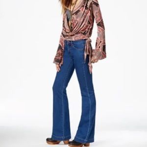 Stylish flare jeans. Wide leg design. Classic blue color. Perfect for casual wear.