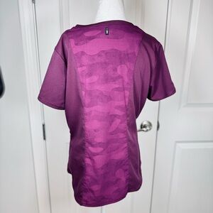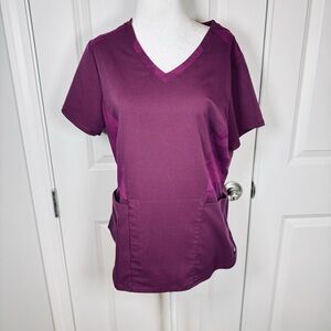 Grey’s Anatomy Scrub Top Women Medium Plum Stretch V-Neck Zipper Pocket Workwear
