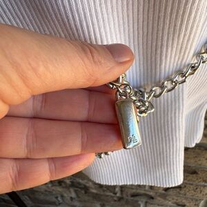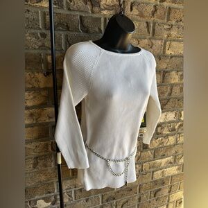 Lauren Ralph Lauren White Ribbed Sweater Tunic with Silver Chain Belt Size M