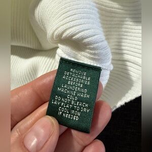 Elegant Lauren Ralph Lauren ribbed knit sweater tunic in classic white with signature silver-tone chain belt.
