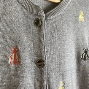 tags: nic and zoe cardigan embroidered cardigan busy bee sweater gray sweater size medium womens sweater knit cardigan fall sweater spring sweater cozy sweater boutique style womens fashion casual sweater layering piece cute sweater