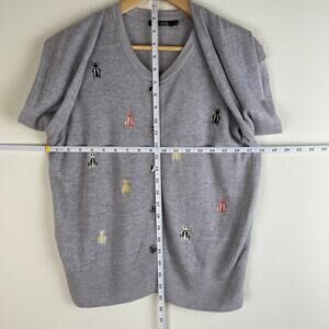 NIC + ZOE Busy Bee Embroidered Cardigan Size M Grey Multi